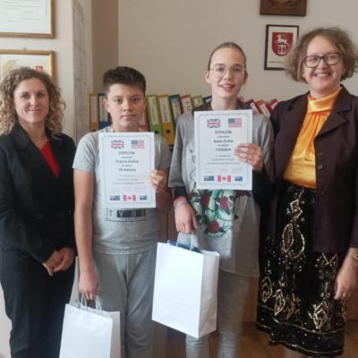 ZorganizowanorównieżKonkurs Wiedzy o Krajach Anglojęzycznych, który miał formę testu. Sprawdzał on znajomość kultury, historii i geografii krajów, w których angielski jest językiem urzędowym lub dominującym, takich jak USA, Wielka Brytania, Kanada, Australia.12 uczniów z klas 5 – 8 wzięło w nim udział. Pytania konkursowe zostały opracowane i sprawdzone przez p. EwelinęKoczerę. Wyniki przedstawiają się następująco: