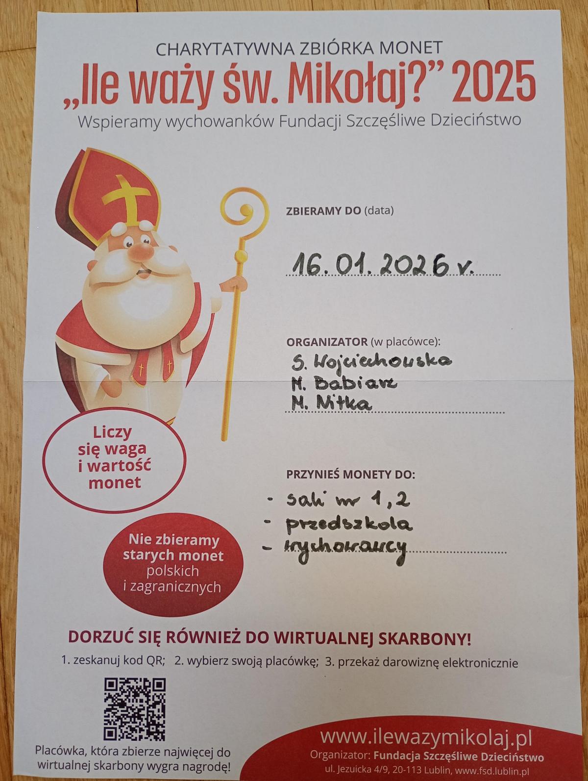 Akcja charytatywna „Ile waży Święty Mikołaj?” w naszej szkole!