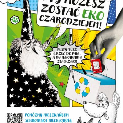 Jest to kampania edukacyjno-charytatywna, której celem jest edukacja ekologiczna dzieci i dorosłych w zakresie segregacji tuszów do drukarek. Zachęcamy uczniów do przyniesienia z domu zużytych tuszów z drukarek atramentowych i wrzucenia ich do przygotowanych kartonów. Zebrane w ten sposób odpady przekażemy do recyklingu, a z pozyskanych dzięki temu środków organizatorzy akcji zakupią karmę dla zwierząt ze schronisk.