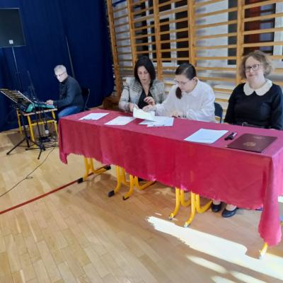 Prowadząca spotkanie, Weronika Bąk – uczennica klasy VIII - powitała serdecznie wszystkich zebranych i przedstawiła cele konkursu.