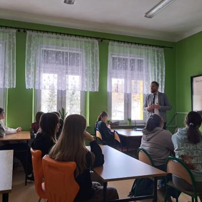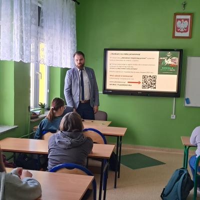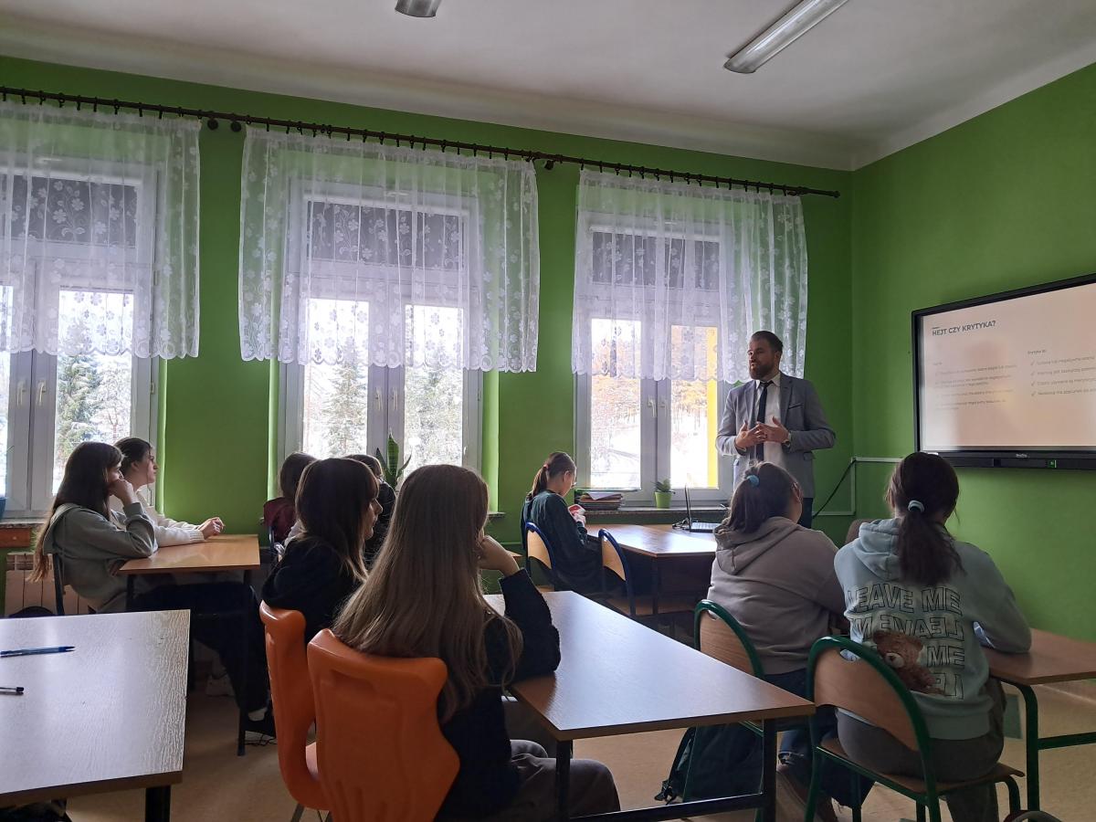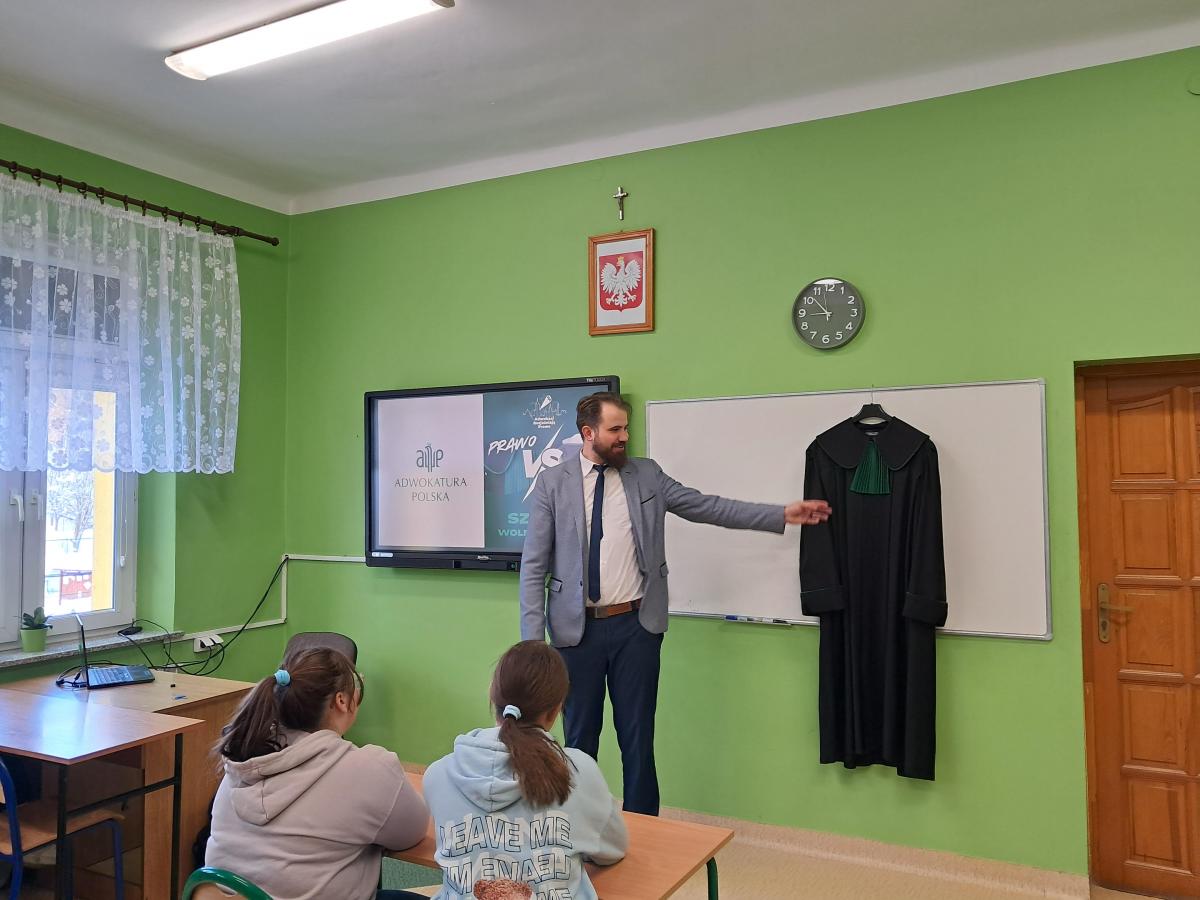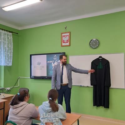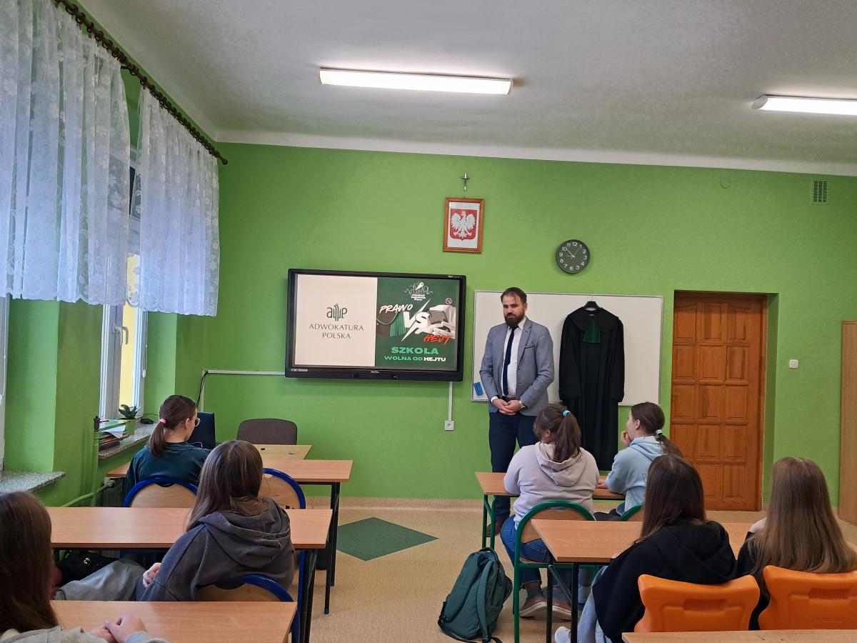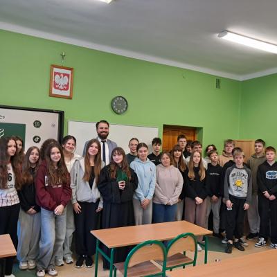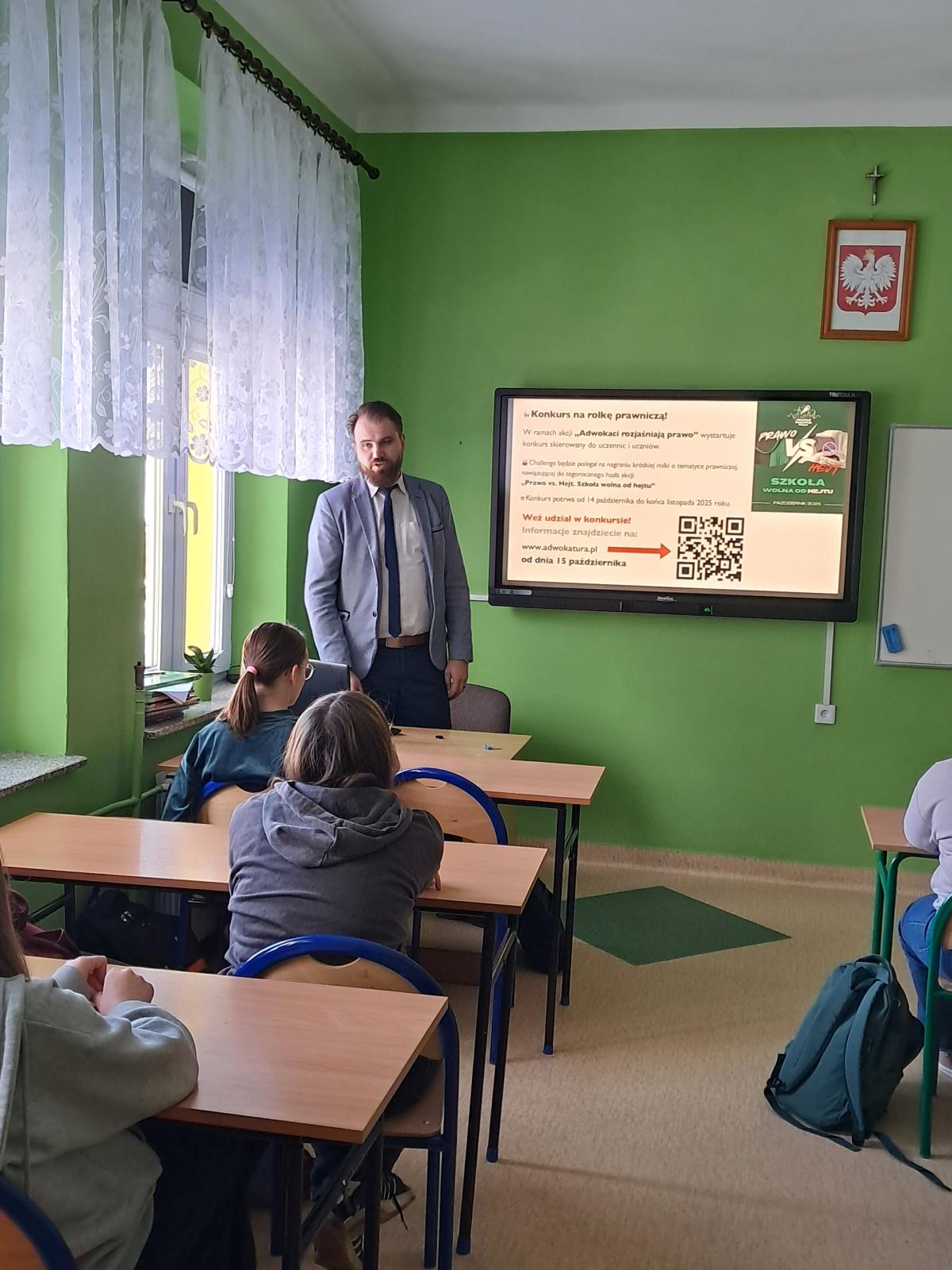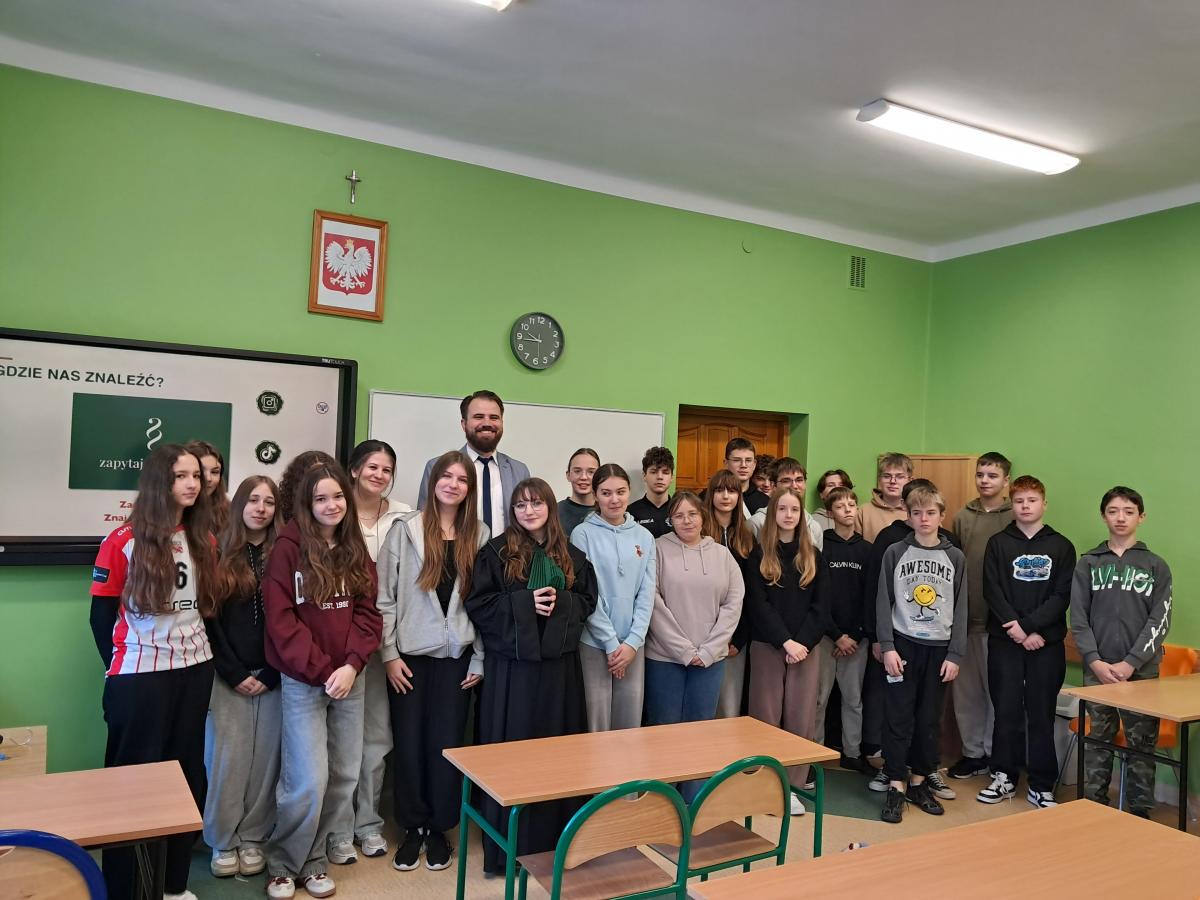 24 listopada 2025 r. uczniowie klas VII i VIII wzięli udział w spotkaniu z adwokatem Janem Łachem, które odbyło się pod hasłem: