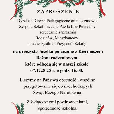 Zespół Szkół im. Jana Pawła II w Pobiednie | ZAPROSZENIE NA JASEŁKA