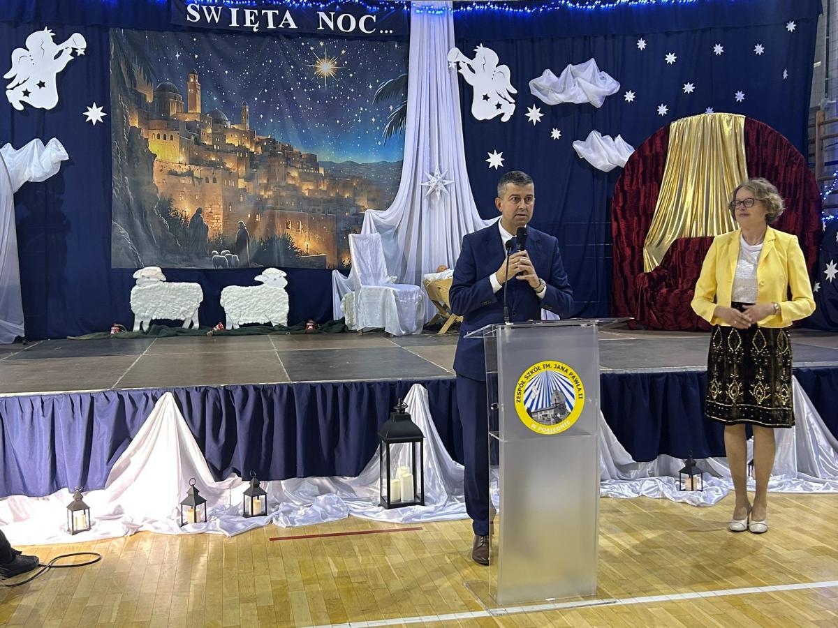 Wprowadzenie w niezwykły nastrój nadchodzących Świąt Bożego Narodzenia stało się faktem dzięki wzruszającemu i profesjonalnie przygotowanemu przedstawieniu jasełkowemu. Wydarzenie to było owocem ciężkiej pracy i zaangażowania, a w szczególności: p. Barbary Ciepły, p. Marioli Babiarz, p. Bożeny Skubisz, p. Sabiny Wojciechowskiej, p. Mariusza Prajznera, p. Lesława Pyrcaka, którzy pełnili rolę reżyserów i opiekunów artystycznych całego przedsięwzięcia. Wyrazy wdzięczności należą się również p. Łukaszowi Brejta za nieocenioną pomoc techniczną. To wyjątkowe popołudnie uświetnił także świąteczny kiermasz, zorganizowany dzięki zaangażowaniu i pomocy Rady Rodziców, a także za przygotowanie wspólnego poczęstunku, na którym gościły potrawy związane z tradycją Bożego Narodzenia.