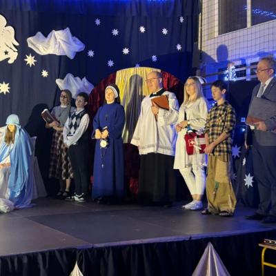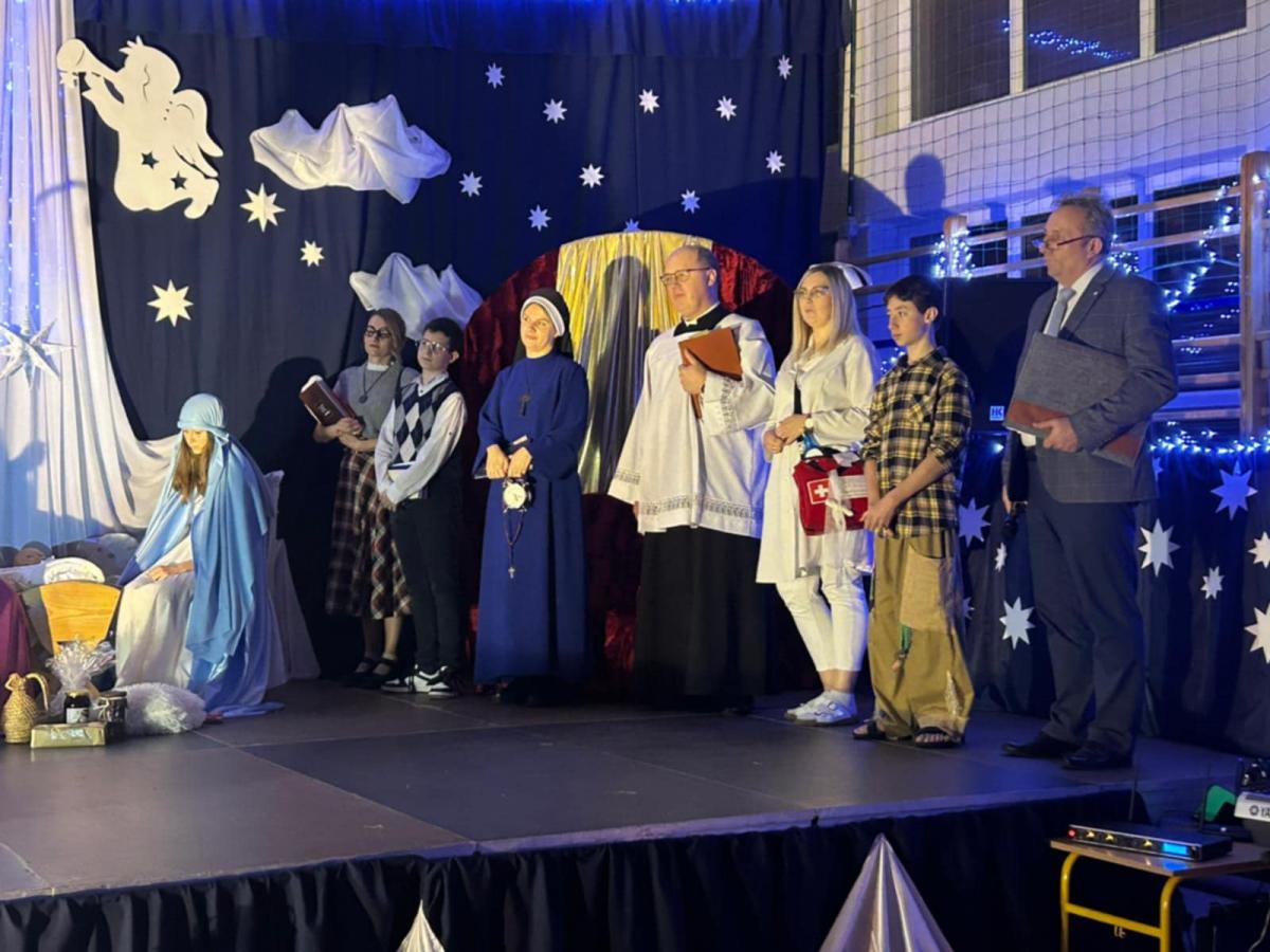 Wprowadzenie w niezwykły nastrój nadchodzących Świąt Bożego Narodzenia stało się faktem dzięki wzruszającemu i profesjonalnie przygotowanemu przedstawieniu jasełkowemu. Wydarzenie to było owocem ciężkiej pracy i zaangażowania, a w szczególności: p. Barbary Ciepły, p. Marioli Babiarz, p. Bożeny Skubisz, p. Sabiny Wojciechowskiej, p. Mariusza Prajznera, p. Lesława Pyrcaka, którzy pełnili rolę reżyserów i opiekunów artystycznych całego przedsięwzięcia. Wyrazy wdzięczności należą się również p. Łukaszowi Brejta za nieocenioną pomoc techniczną. To wyjątkowe popołudnie uświetnił także świąteczny kiermasz, zorganizowany dzięki zaangażowaniu i pomocy Rady Rodziców, a także za przygotowanie wspólnego poczęstunku, na którym gościły potrawy związane z tradycją Bożego Narodzenia.