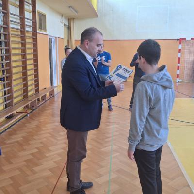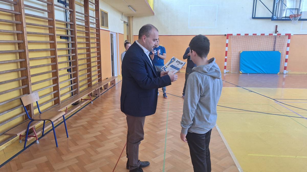 Jeszcze lepiej wypadli chłopcy, którzy zajęli II miejsce. Wygrali z SP 3 i SP 4 po 2:0 , a w decydującym meczu o pierwsze miejsce ,które dawało awans do etapu wojewodzkiego, po bardzo wyrównanym meczu przegrali z SP 9 dwoma punktami. Chłopcy grali w składzie: Filip Józefek, Jan Bąk, Kamil Borończyk, Karol Krukar, Eryk Szałajko, Rafał Gerla, Dominik Obuch, Franek Ambicki.