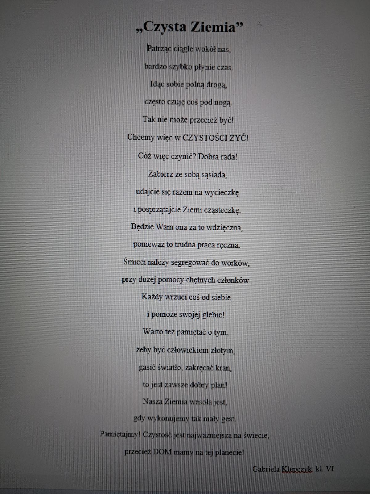 Cieszymy się z sukcesów uczennic naszej szkoły w konkursie artystycznym zorganizowanym przez Osiedlowy Dom Kultury ” Gagatek” w Sanoku. W kategorii zdjęcie: Anna Żytka z kl. VIII zdobyła Grand Prix Konkursu a Gabriela Klepczyk z kl. VI za wiersz otrzymała wyróżnienie. W swoich pracach dziewczyny pokazały za co lubią przyrodę oraz jej piękno. Do udziału w konkursie zainspirowała uczennice pani Aneta Wojtanowska.